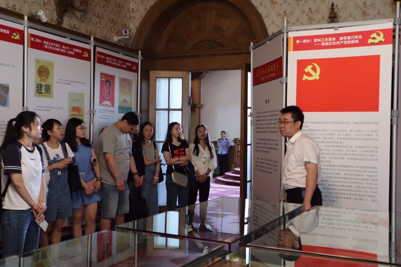 为深入学习贯彻习近平新时代中国特色社会主义思想和党的十九大精神,重温党的光辉革命历程,7月11日上午,388vip太阳集团官网思想政治教育学科教工和研究生党支部、马克思主义发展史和基本原理学科教工党支部、马克思主义中国化学科党支部联合组织了“追寻领袖足迹,牢记初心使命”主题党日活动,师生党员来到革命领袖视察黑龙江纪念馆参观学习、重温入党誓词。