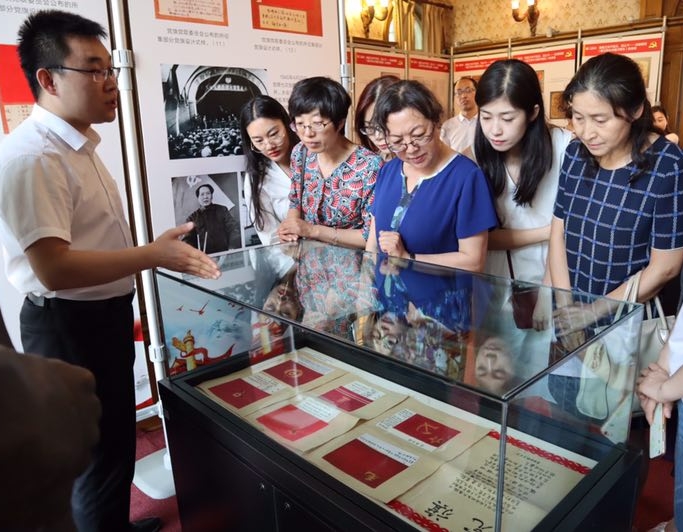 讲解员首先为党员们讲解了党旗、党徽图案的演进历程,参观了中国共产党一大至十九大图片展览。展览全面反映了中国共产党自1921年一大召开以来的光辉历史,反映了中国共产党带领全国各族人民投身新民主主义革命、社会主义革命和改革开放新的伟大革命,为实现社会主义现代化和推动中华民族伟大复兴的辉煌征程。在讲解员的解说下,党员们对党的辉煌历程有了更加详尽而深刻的认识和体会。