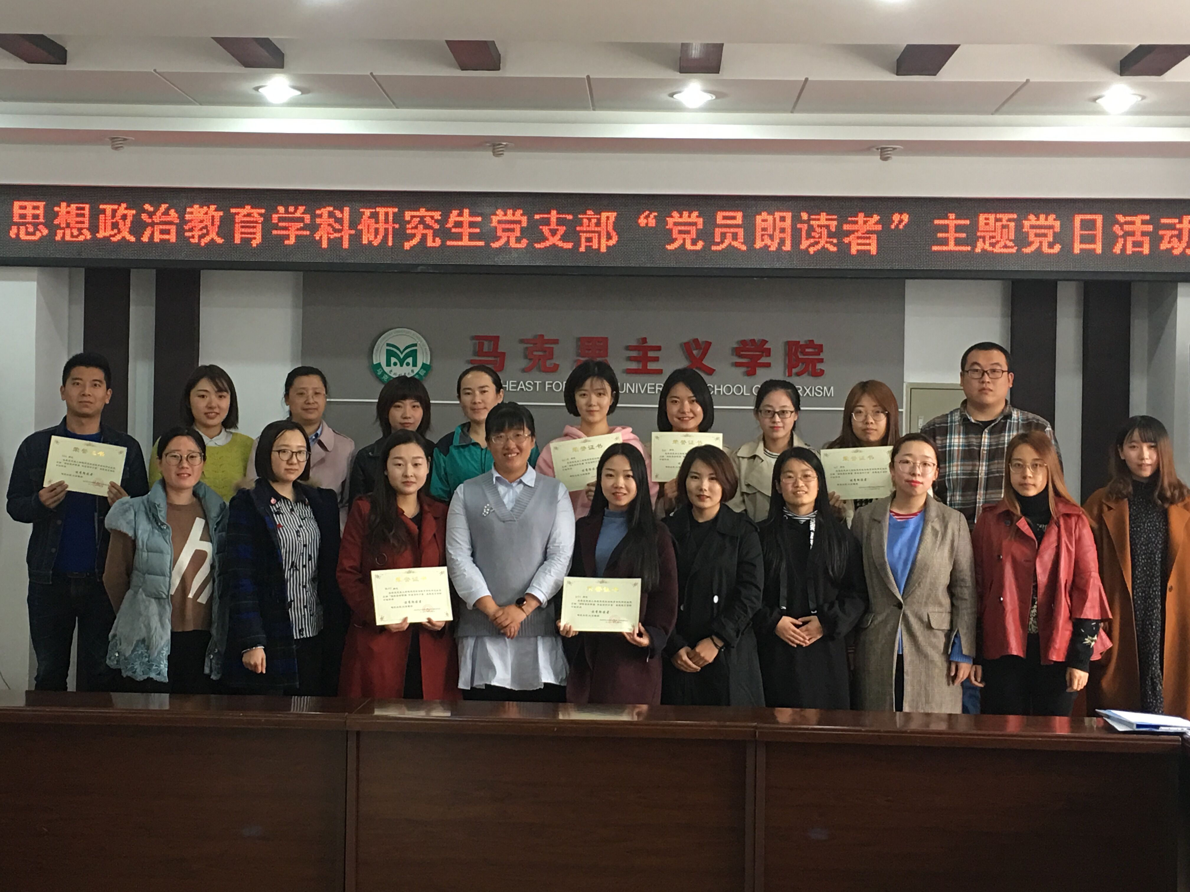 为深入学习贯彻习近平新时代中国特色社会主义思想和党的十九大精神,推进“两学一做”常态化学习教育,坚定理想信念,增强爱党爱国情怀, 2018年10月10日在文博楼921会议室,388vip太阳集团官网思想政治教育学科研究生党支部举办了“党员朗读者”主题党日活动。支部书记、辅导员杨丽艳及全体支部党员与非党积极分子参加了本次活动。 活动伊始,杨丽艳介绍了本次活动的目的和意义,并与参会人员分享了赵一曼的英雄事迹,诵读的《赵一曼写给宁儿的信》让在场每一位成员深深感受到了赵一曼作为一位年轻母亲对儿子深厚的爱,作为一位革命者对祖国始终保持着坚如磐石的革命意志。