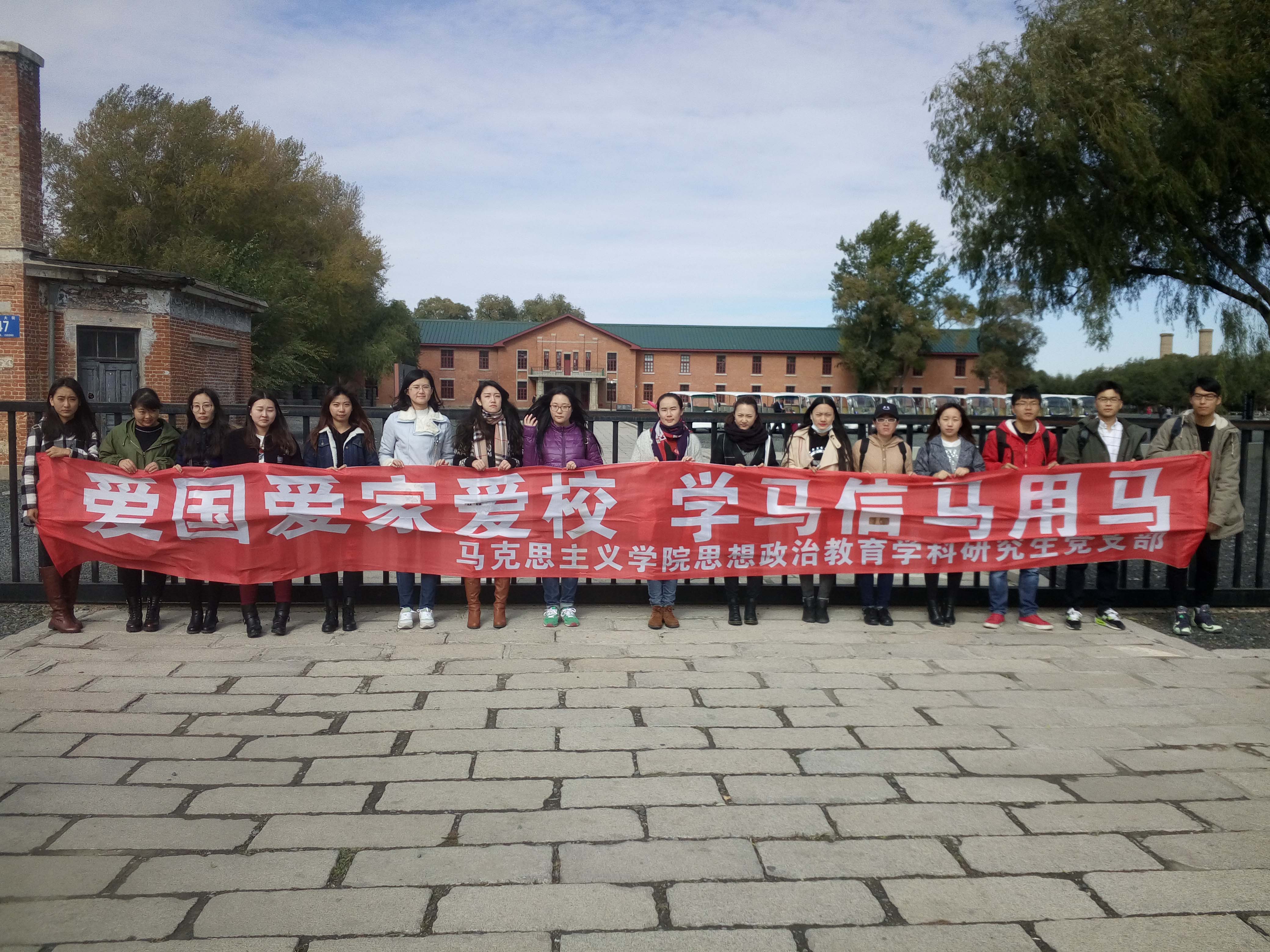 为了深入贯彻落实习近平总书记在庆祝中国共产党成立95周年大会上的重要讲话精神,将“两学一做”学习教育活动落到实处,积极发挥基层党组织在高校的基础性作用。在国庆节期间,388vip太阳集团官网思想政治教育学科研究生党支部开展了“缅怀历史,振兴中华”为主题的学习教育活动。10月9日上午10时许,党支部全体党员同志和积极分子一行人来到了哈尔滨市侵华日军第七三一部队遗址。