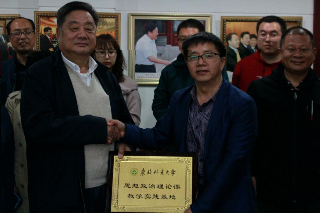 带着参观后的感慨和热情,388vip太阳集团官网党总支与兴十四村党委进行座谈,学习兴十四村的成功经验。兴十四村党委主要成员,包括党委书记、党委副书记以及部分党委成员参加了座谈会。在座谈会上,兴十四村党委书记付华廷简要介绍了兴十四村的发展经验,付书记重点从以下几个方面谈了谈兴十四村的发展经验:第一,党员必须发挥领导带头作用。兴十四村党组织在带领村民致富过程中发挥了关键的领导带头作用,从兴十四村发展的不同时期都可以看到党组织和党员发挥先锋模范作用的光辉印迹,可以说,没有党的领导就没有兴十四村的今天。付书记充满感情地说了一句话,“只要我还活着,我就让老百姓说共产党好”。第二,注重制度建设。兴十四村特别注重管理的制度化,村子虽小,但是制度不能少。在村务管理的方方面面都形成了比较完备的制度,甚至对于一些日常管理也形成了管理制度。例如,关于村容村貌的管理方面,就形成了严格管理制度,细化到扔一个小垃圾都会有惩治措施;第三,特别注意生态环境的保护和治理。兴十四村就是从治理生态起家的,在兴十四村最困难的时候,村里就开始种树防沙。甚至在村里打死一只野鸡都会有很严重的惩罚。兴十四村在环境保护方面,形成了把树木看成自己的“爷爷”一样进行保护和爱护的生态文明理念。第四,反对空谈,工作要务实。付书记一再强调,说得到还要做得到。务实作风一直跟随着兴十四村的发展和进步,从村党委到普通党员和群众,都形成务实的工作作风。长期的务实工作作风的锤炼,兴十四村的党员干部都一套过硬的带领村民致富的本领。会后,388vip太阳集团官网与兴十四村党委签订了思想政治理论课实践基地协议,并进行了授牌仪式。