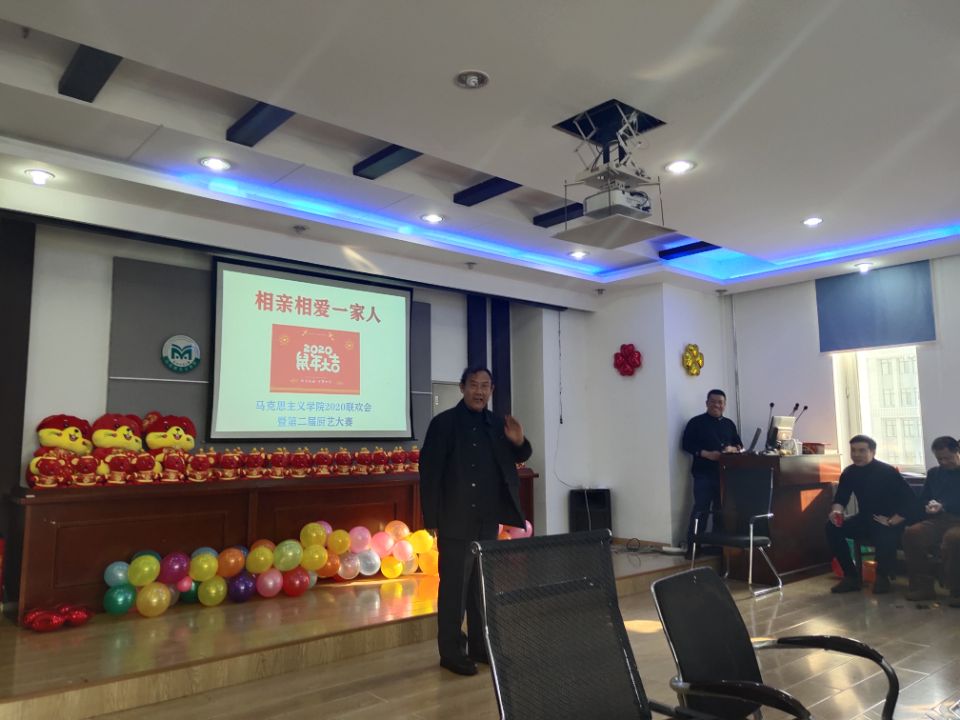 晚会伊始,学院党总支书记刘经纬首先致辞,他对学院三位退休教师代表及全院教职工致以诚挚的问候和新年的祝福,对过去的一年中学院所取得的各项成绩给予充分的肯定,号召全院师生在党的十九届四中全会精神指引下,继续不忘初心、牢记使命,肩负起时代赋予思政课教师的历史使命和社会责任。
