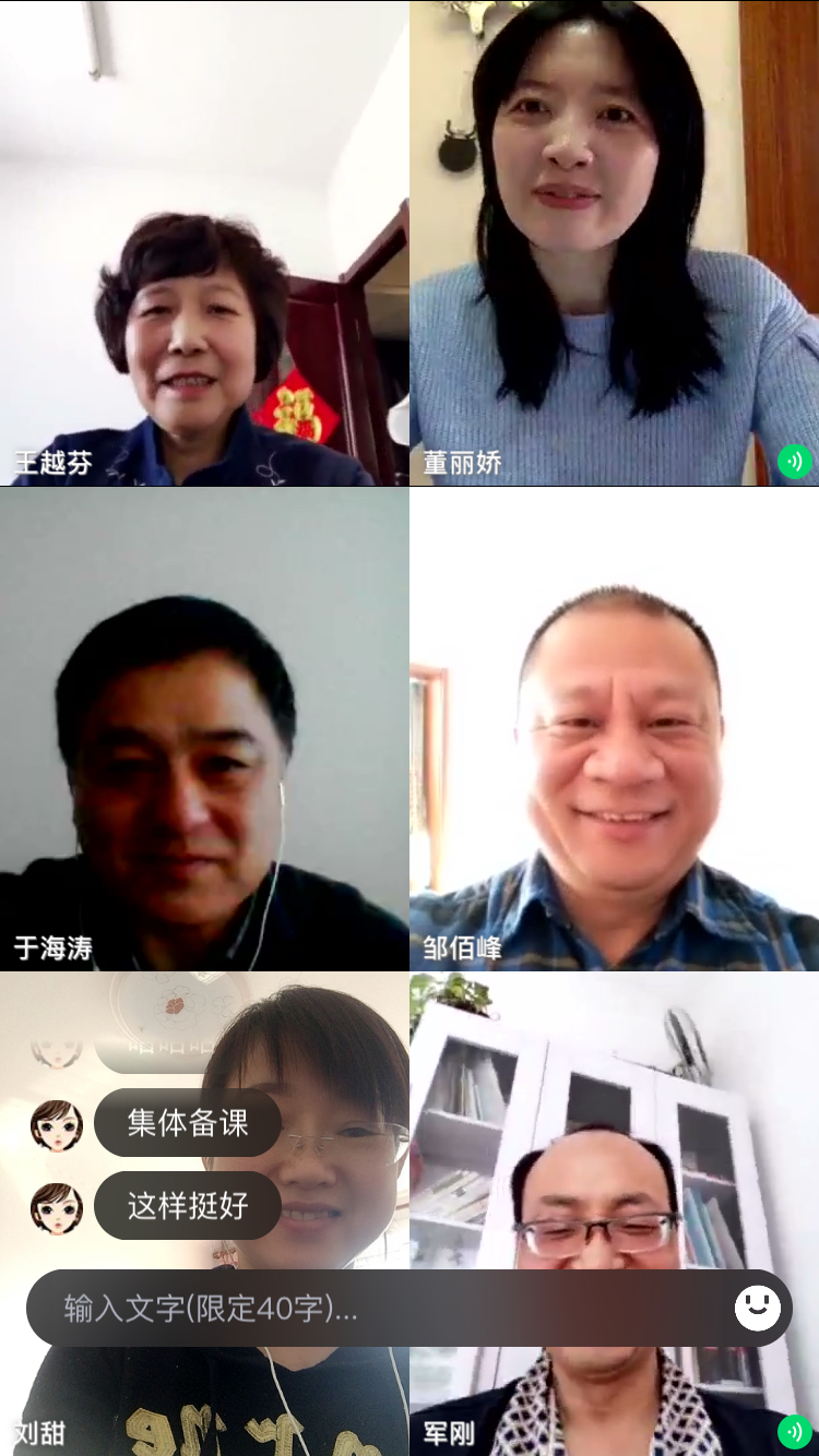 集体备课第一项内容是,各位老师分别介绍自己线上课准备情况。各位老师根据自己的实际情况,分别介绍了一下自己的线上授课的基本思路、备课完成情况、与学生联系情况、可能存在的困难等等。
