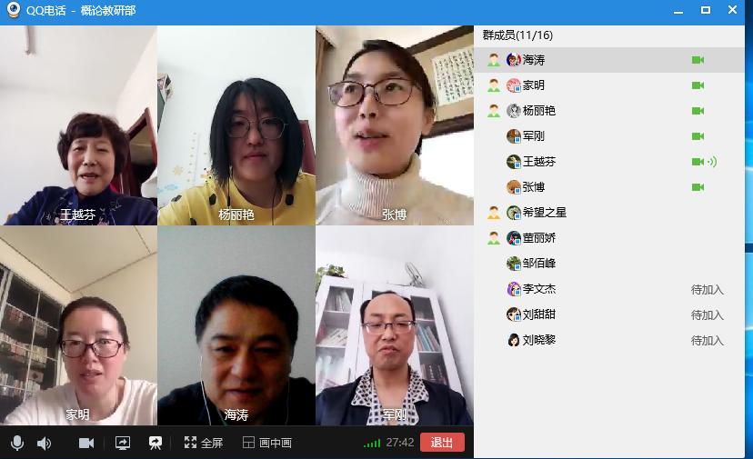 为贯彻学校和学院关于新冠肺炎疫情防控期间做好教学工作的指示精神,更好地完成新冠肺炎疫情防控期间的教学任务。2020年2月27日上午,388vip太阳集团官网概论教研部全体教师以QQ视频会议的形式召开了学期前的集体备课工作会议。集体备课由概论教研部主任于海涛老师召集和主持。为了做好在线教学工作,388vip太阳集团官网制定了领导班子成员联系教研部制度,侯彦杰院长负责联系概论教研部,也参加了此次会议。与会老师充分利用线上交流的方式,踊跃发言,各抒己见,集体备课氛围极为热烈。