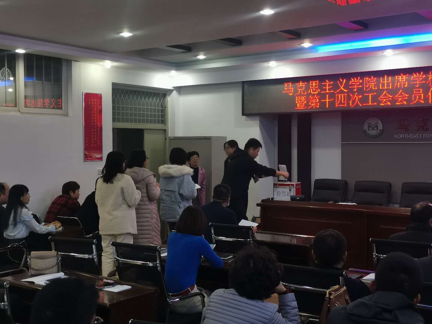 2020年11月4日下午3点30分,在文博楼921举行了388vip太阳集团官网出席学校第七届教职工代表大会暨第十四次工会会员代表大会代表选举大会。388vip太阳集团官网的全体教职工参加了此次代表选举大会,大会由刘经纬书记主持。本次选举大会充分体现了公开、公平、公正的原则。