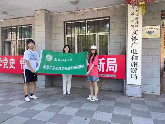 一方绿水青山滋养出人杰地灵,一片山河壮阔彰显出盛世华章,在新时代,我们仍需将绿意永存心间,我们仍需探索走向生态文明城市的道路。在“黑龙江省生态文明建设与绿色发展智库”的组织下,“探索森林家园团队”秉承“学参天地,德合自然”的校训,于2021年暑假,在王海飙老师的带领下,走进大兴安岭地区价格达奇市,通过线上问卷发放和线下走访,到达加林局,旅游局,社区,水文局等地,开展了实践调研活动。
