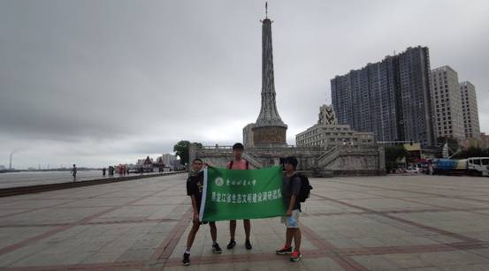 (图为团队成员在佳木斯防洪纪念塔前合照)