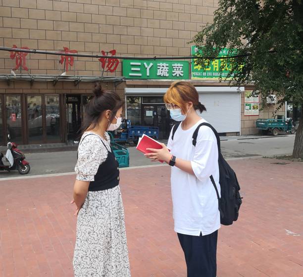 (团队成员钟琦对于路人进行访问 张子涵 摄)