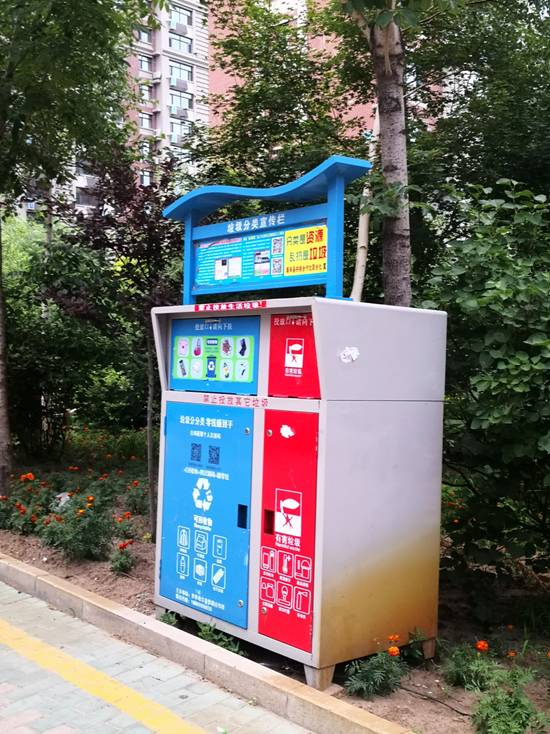 (图 社区内的垃圾分类处理箱 钟琦 摄)