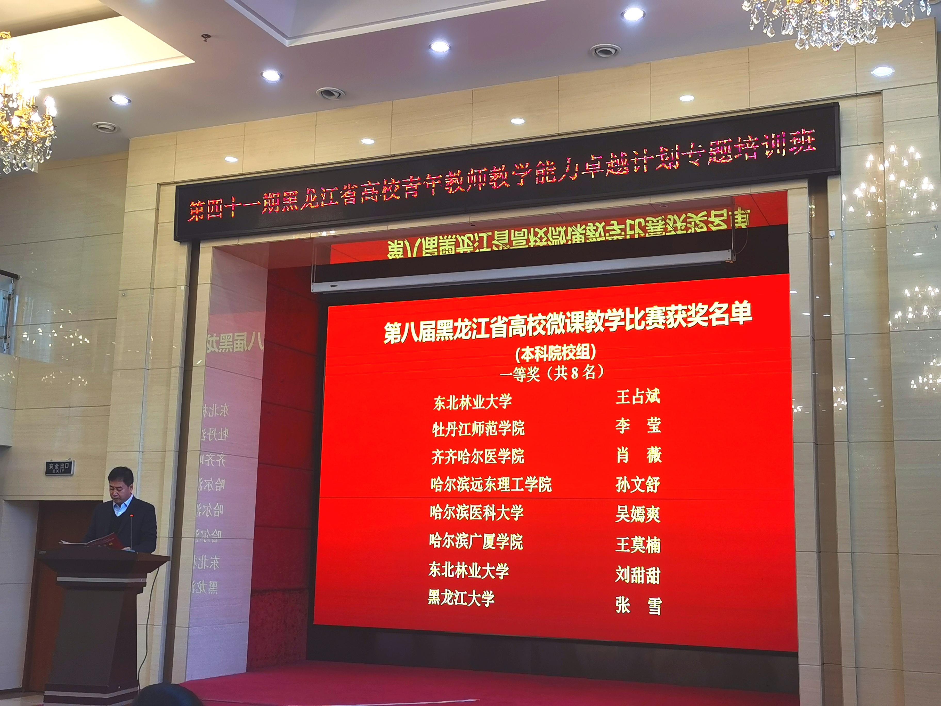 本次活动由黑龙江省教育厅高校师资培训中心和教育部全国高校教师网络培训黑龙江省分中心联合举办,旨在推动高校教师专业发展和教学能力提升,搭建高校教师教学经验交流和教学风采展示平台。经各高校推荐和专家组评选,本科组微课作品共评选出一等奖8名、二等奖12名、三等奖16名。本次评选面向理工、文法、管理、医学等多学科门类,我校思想政治理论课作品能在多学科申报作品中脱颖而出,是学院不断深化教学改革,注重课程建设、教师队伍建设的成果,也是太阳官网教师努力钻研业务、提升教学能力的回报,充分展示了太阳官网教师良好的教学能力和教学风采。