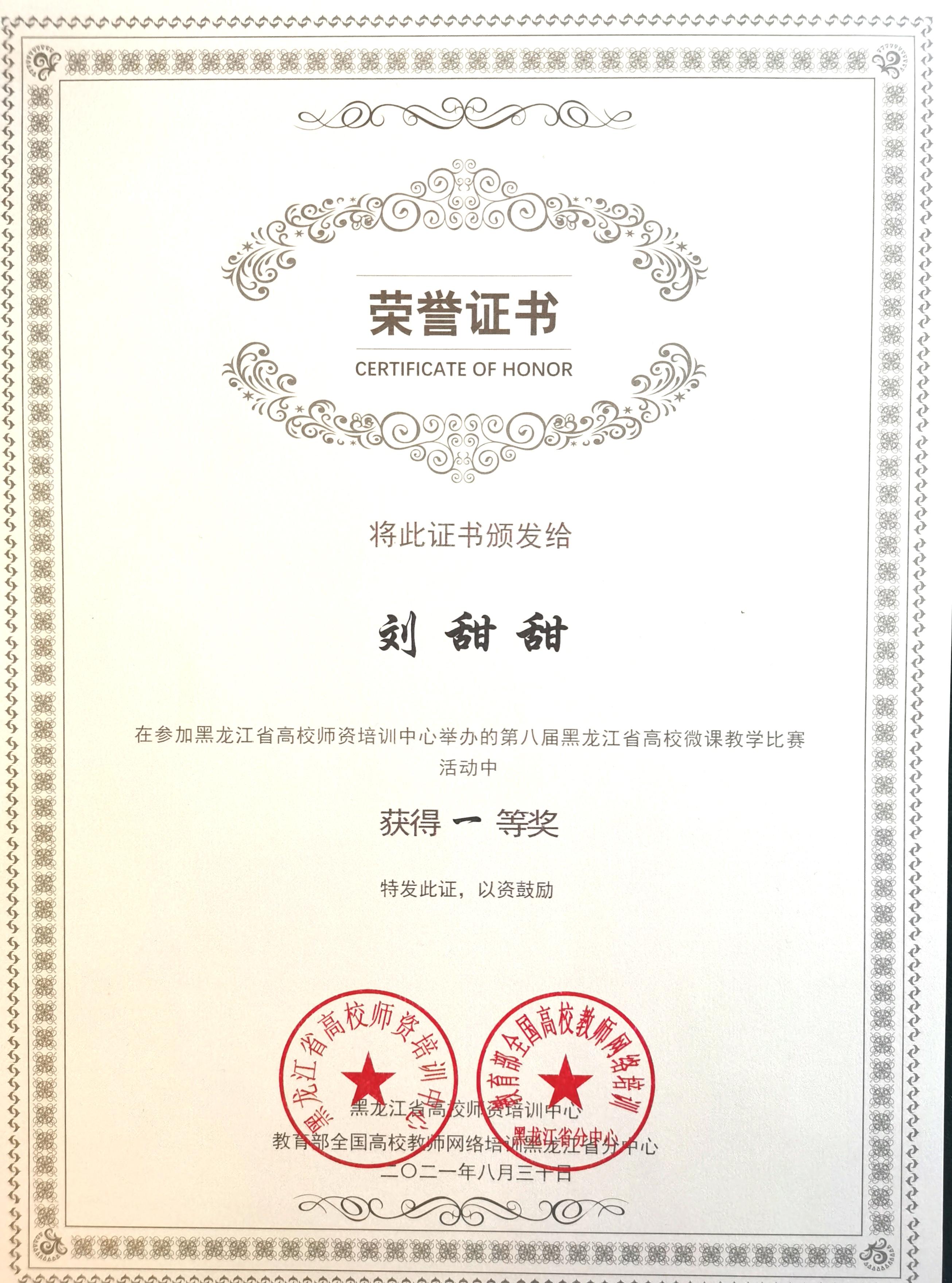 近日,黑龙江省高校师资培训中心对“第八届黑龙江省高校微课教学比赛”评选结果进行公示,太阳官网刘甜甜老师参赛作品《“解放思想 实事求是”思想路线的时代价值》获得高校微课教学比赛一等奖。