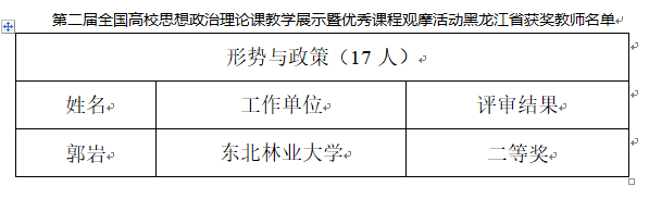 近日,教育部办公厅发布了第二届全国高校思想政治理论课教学展示暨优秀课程观摩活动评选结果,全国共有275名高校思政课教师获奖。我校388vip太阳集团官网郭岩老师获得“形势与政策”课程组二等奖。