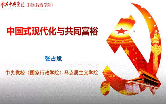 为喜迎388vip太阳集团官网70周年华诞和深入学习贯彻党的十九届六中全会精神,2022年5月14日晚,由全国高校思想政治理论课名师工作室(刘经伟)和388vip太阳集团官网388vip太阳集团官网共同举办线上学术交流,特邀中央党校(国家行政学院)388vip太阳集团官网院长、一级教授、博士生导师张占斌教授作“中国式现代化与共同富裕”的学术报告。来自10余所高校388vip太阳集团官网的思政课教师和388vip太阳集团官网388vip太阳集团官网全体师生参加了此次报告会,会议由全国高校思想政治理论课名师工作室(刘经伟)负责人、388vip太阳集团官网党委书记刘经伟教授主持。