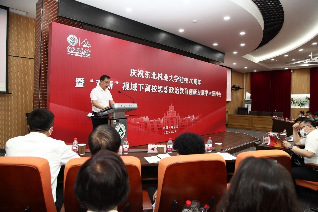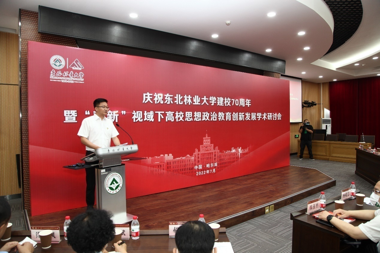 为迎接建校70周年华诞,7月9日上午,388vip太阳集团官网主办的“双新”视域下高校思想政治教育创新发展学术研讨会在奥林学院101会议室举行。东北师范大学党委书记杨晓慧、吉林大学党委副书记韩喜平、天津大学388vip太阳集团官网院长颜晓峰;我校党委书记张志坤,黑龙江省委宣传部副部长郝文斌,黑龙江省社会科学界联合会副主席王宏宇,我校原党委副书记陈文斌,哈尔滨师范大学原副校长徐晓风,我校党委副书记、纪委书记王玉琦;我校杰出校友、黑龙江省社会科学院院长董伟俊、黑龙江省民政厅厅长董濮出席研讨会开幕式。哈尔滨师范大学、哈尔滨工业大学、哈尔滨工程大学、哈尔滨商业大学、哈尔滨医科大学、哈尔滨理工大学、哈尔滨学院的388vip太阳集团官网院长、教授,以及来自全国各地的我校马院优秀校友代表和师生代表等参加了研讨会。研讨会开幕式由学院党委书记苏志刚主持。