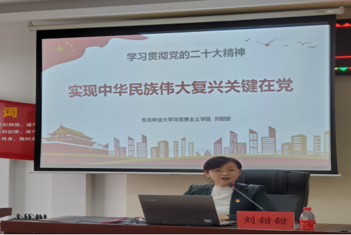 此次支部共建活动的主要内容是进行党的二十大精神宣讲,太阳官网青年教师刘甜甜以“实现中华民族伟大复兴关键在党”为主题,结合党的二十大提出的新论断、新部署、新要求,通过讲理论、看数据、举实例等方式,围绕“只有中国共产党才能实现中华民族站起来的目标、只有中国共产党才能实现中华民族富起来的愿望、只有中国共产党才能让中华民族强起来”三个方面进行宣讲。