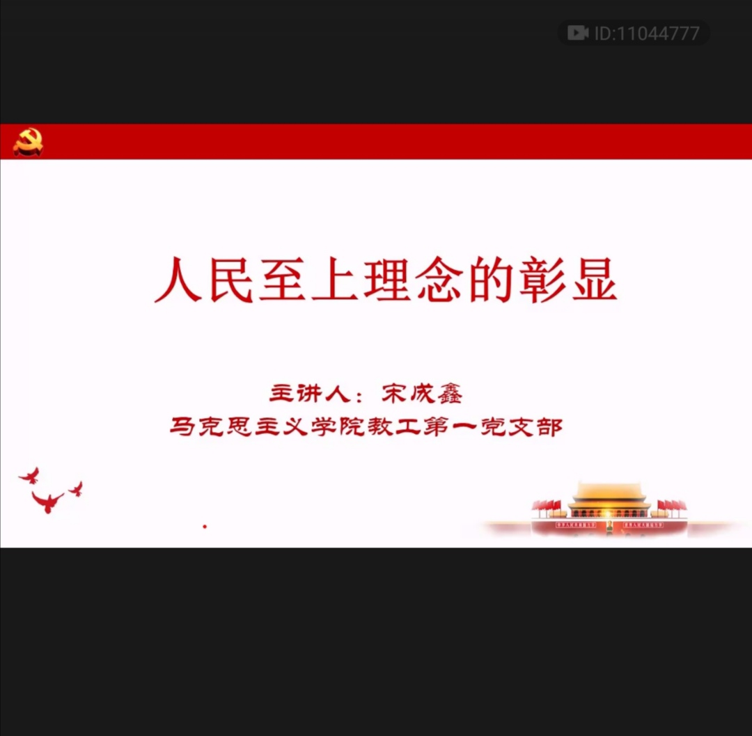 为迎接建党99周年,6月29日388vip太阳集团官网教工第一党支部在线举行了支部书记讲微党课活动。支部书记宋成鑫以“人民至上理念的彰显”为题进行了一场非常精彩的微党课。
