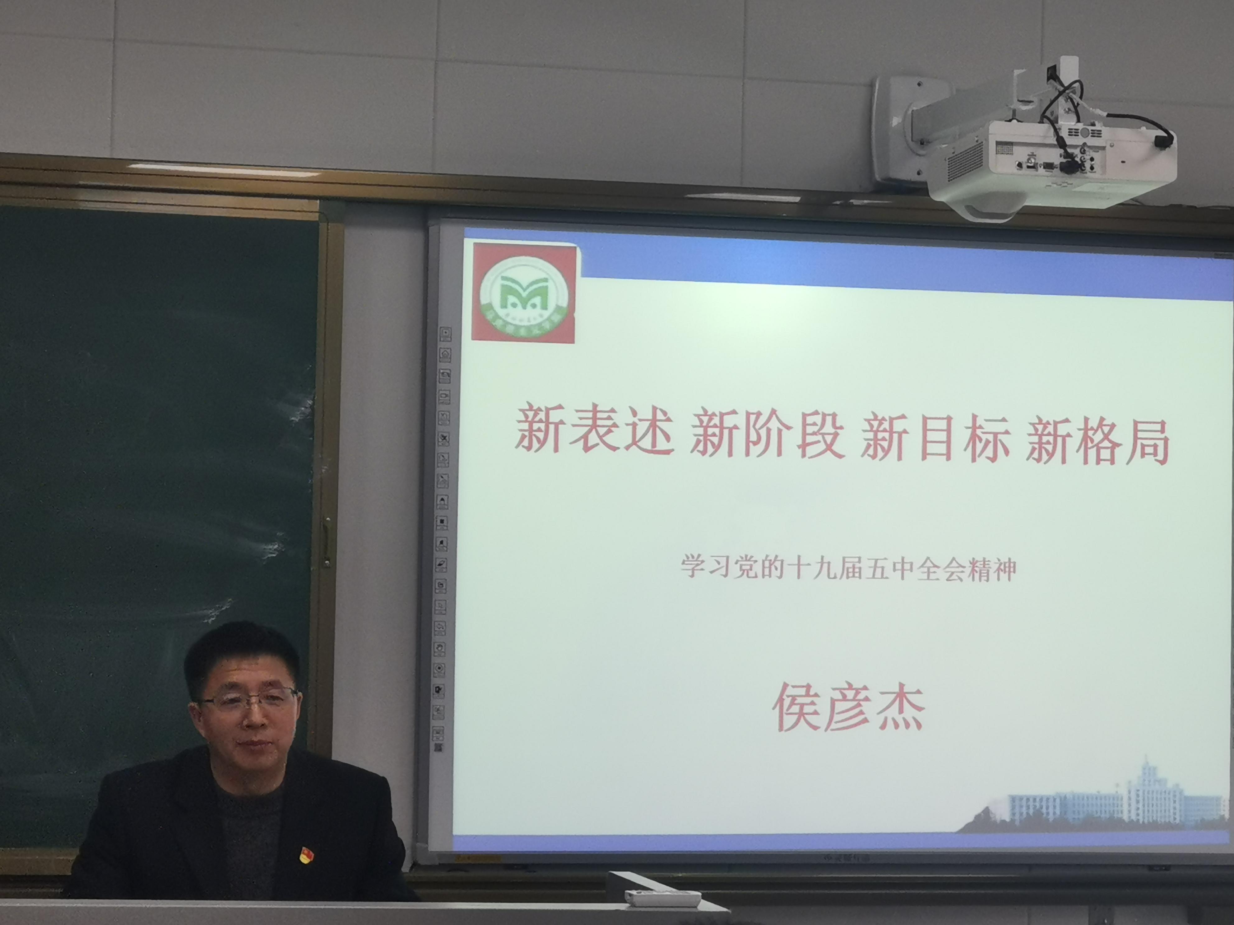 2020年12月23日12点20分,388vip太阳集团官网院长侯彦杰教授在文博楼511作主题为“新表述、新阶段、新目标、新格局”的十九届五中全会精神辅导党课,参加党课的老师有388vip太阳集团官网概论教研部和学院教工第三党支部全体教职员工。