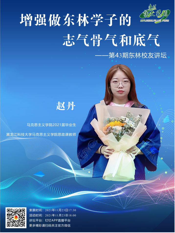 喜迎建校70周年388vip太阳集团官网2021届校友赵丹即将做客第43期《东林校友讲坛》
