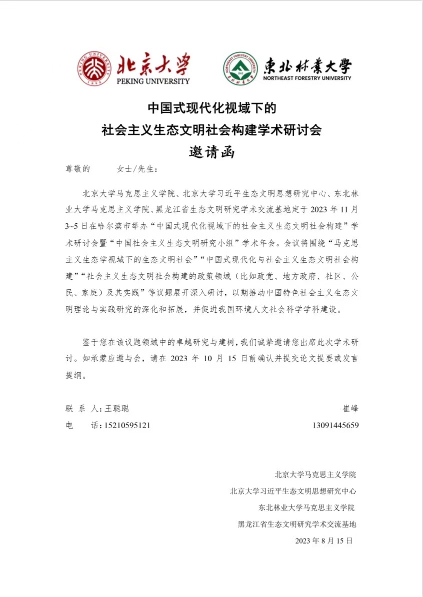 中国式现代化视域下的社会主义生态文明社会构建学术研讨会邀请函