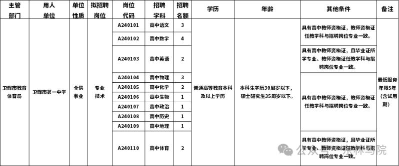 9.河南省新乡卫辉市事业单位公开招聘工作人员
