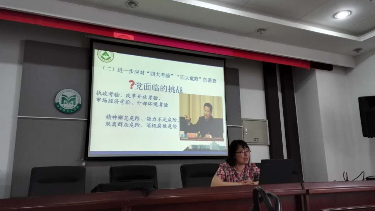 6月21日下午2点在文博楼921室,马克思主义发展史和基本原理学科教工党支部书记、“纲要课”专任教师、硕士生导师宋成鑫副教授以“‘两学一做’重点在学,关键在做”为主题,为该学科教工党员、研究生党员上了一次 “两学一做” 专题党课。388vip太阳集团官网副院长李伟杰、发展史和基本原理学科教师党员、研究生党员等参加党课学习。